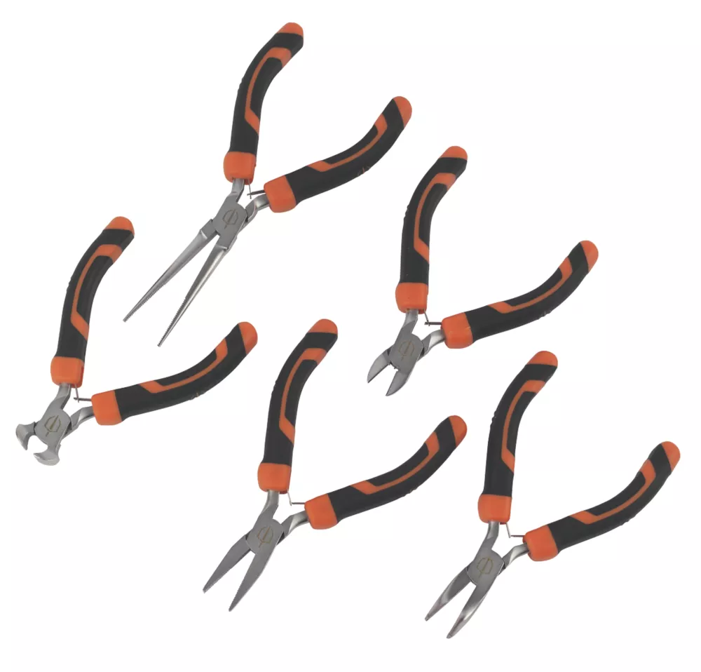 | Contenu | Pince coupante diagonale 115mm, pince à bec long droit 125mm, pince à bec effilé 150mm, pince à bec long courbe 125mm et pince coupante à tête plate 105mm. |