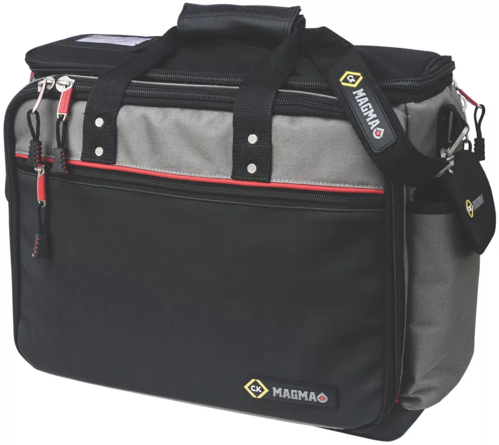 Boîte à outils en tissu polyester 600 deniers avec compartiment extra-large pour l’équipement de test et les outils plus grands. Les poches carrées extra profondes garantissent un accès facile à l’outil. Fournie avec une base en caoutchouc étanche, un séparateur amovible et réglable et des fermetures éclair résistantes et protégées contre les perforations.