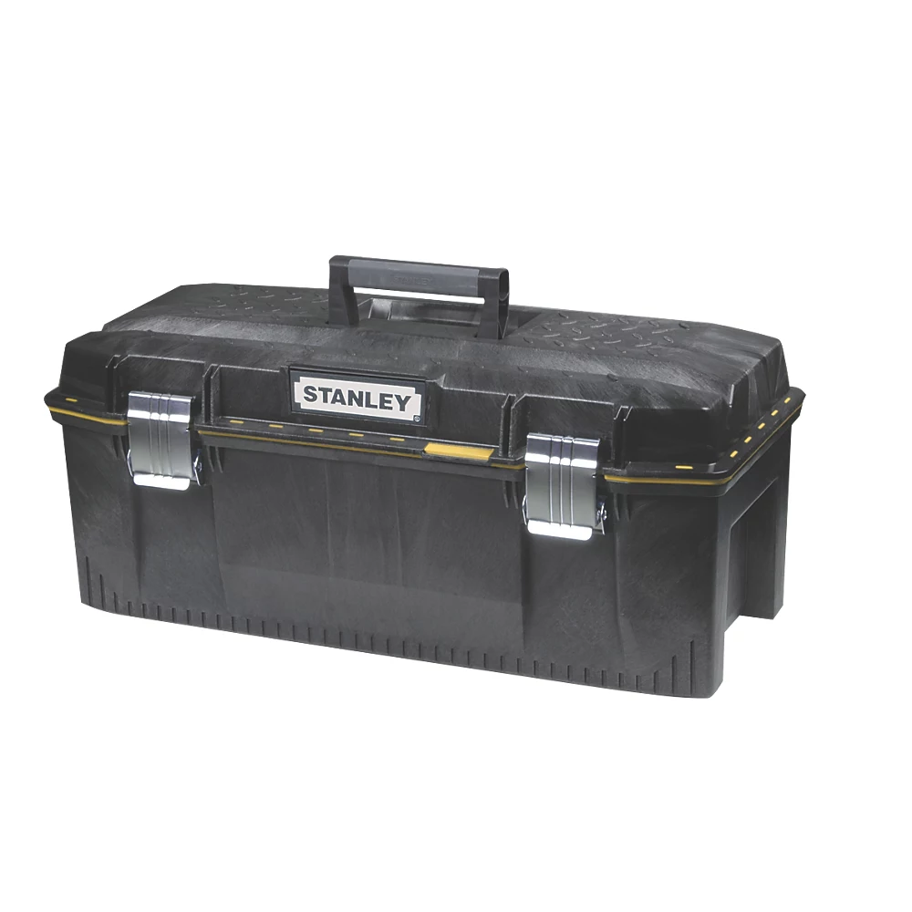 Boîte à outils étanche de grande capacité, pour une protection optimale sur les chantiers ou dans les véhicules. En mousse structurelle durable, avec grands verrous métalliques et goupilles de charnière.
