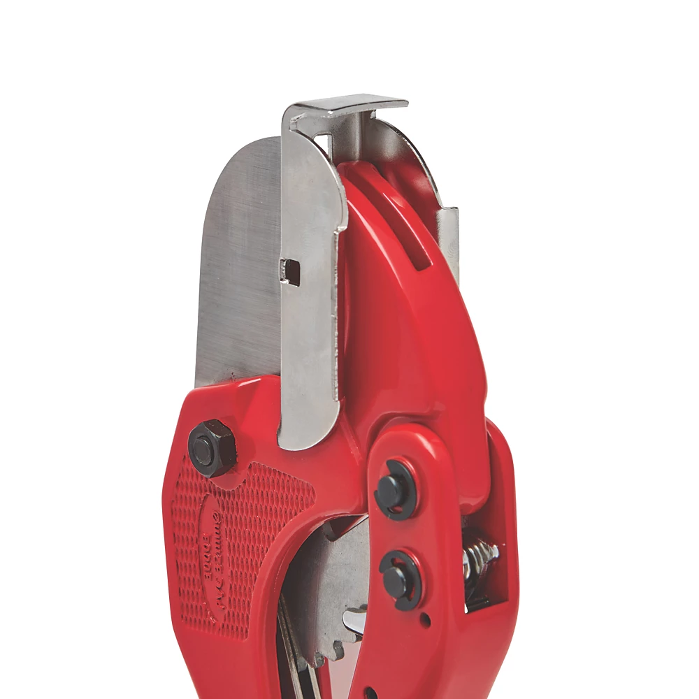 Le coupe-tube à cliquet haute résistance pour tuyaux en PVC, avec corps en aluminium et lame en acier inoxydable ultra-tranchante, offre une coupe droite sans effort sur les conduits en PVC et autres matériaux similaires jusqu’à 32mm. Fourni avec un adaptateur spécial permettant la coupe droite ou à onglet de petites gaines de section rectangulaire.