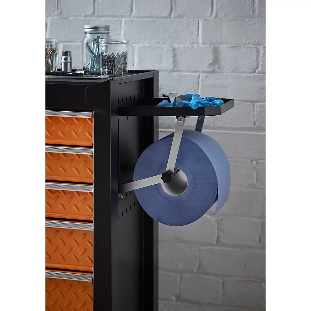 Ce dérouleur Magnusson bénéficie d’un revêtement par poudrage pour une protection plus durable. Il est équipé d’une étagère afin de déposer vos outils et votre matériel pour une plus grande facilité d’utilisation. Peut être fixé à tous les rangements d’atelier Magnusson avec des panneaux latéraux perforés. Dérouleur adapté à un grand rouleau d’essuie-tout.