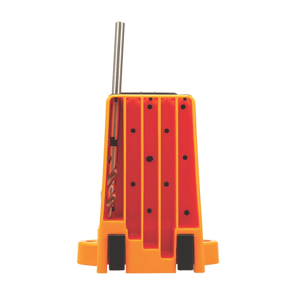 | Contenu | Gabarit, foret étagé (arbre long), collier et clé hexagonale, tournevis carré de 6", 200 vis de tailles diverses, 50 bouchons en bois, boîte de rangement en plastique, boîte d'accessoires, 2 bras de support latéraux, 2 butées et une boîte de rangement pour forets. |