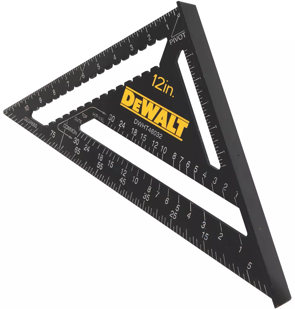 Idéale pour une utilisation comme guide de scie et dotée d’un corps en aluminium très épais pour une utilisation intensive, ainsi que de graduations de couleur contrastées estampées pour une meilleure lisibilité. Elle est également dotée d’une grande base pour une meilleure adhérence sur les matériaux. Échelle d’angle de 90° avec graduations de 1° pour faciliter la mesure des angles. Échelles des coupes supérieures des chevrons, empannons, arêtiers et noues pour plus de polyvalence. Le point de pivot facilite le marquage des angles.