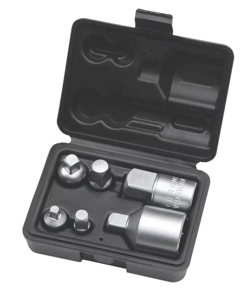 Kit d’adaptateurs universels totalement traités thermiquement. Comprend une gamme complète d’adaptateurs (¼ »-¾ »).