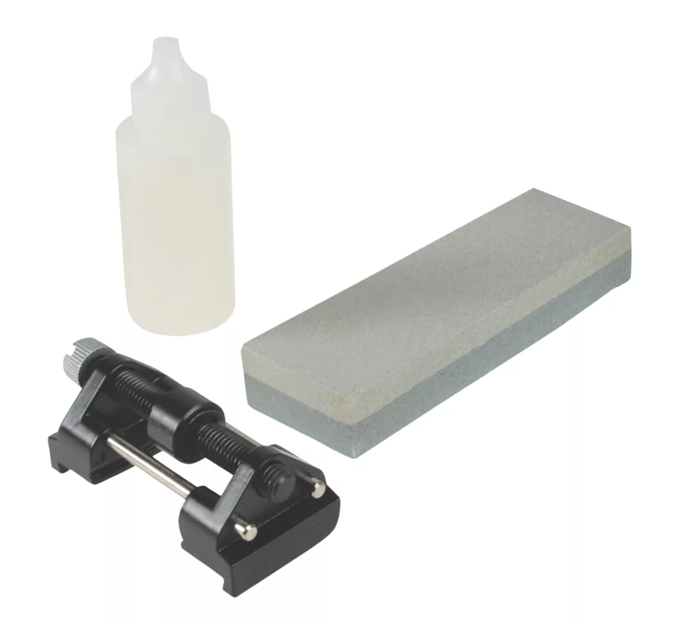 | Contenu | Pierre à affûter, guide d'affûtage et huile d'affûtage. |