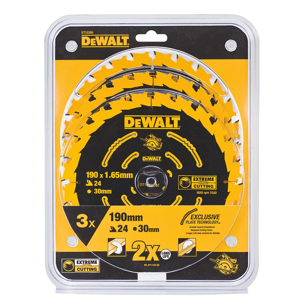 Lames De Scie Circulaire 24 dents DeWalt Extreme 190 X 30mm, Lot De 3
