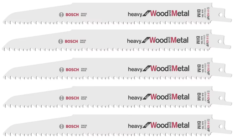 Lot De 5 lames De Scie égoïne Bosch S1110VF Pour Bois Et Métal 225mm