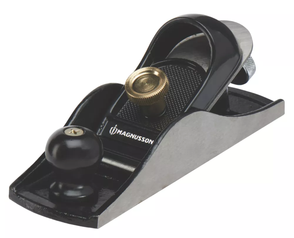 Idéal pour le rabotage transversal à une main. Profondeur de coupe et alignement de la lame réglables.