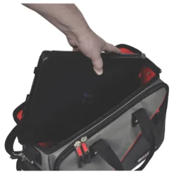 Sac à outils durable avec structure en polyester renforcé et ouverture extra-large pour un accès facile. Base 100% polymère étanche et résistante aux fissures. Poignée et bandoulière rembourrées pour un confort maximal et doublure intérieure rouge vif pour une meilleure visibilité des objets rangés.