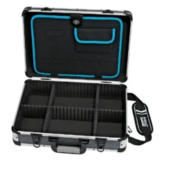 Sacoche à outils en polyester avec base en caoutchouc renforcé. Ouverte supérieure large à fermeture éclair pour un accès facile. Poches en maille pour les petits outils et accessoires. Sangle réglable. Idéale pour transporter les outils à main.