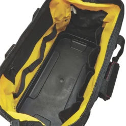 Sacoche à outils ouverte avec sangles réglables permettant de fixer un niveau en aluminium. En polyester résistant, avec cadre rigide doté d’une barre en acier robuste. 12 poches de rangement verticales pour un accès facile aux outils. Grande zone de rangement intérieure avec 33 poches et supports supplémentaires.